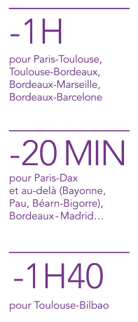 Avec la création des Lignes nouvelles, l’offre ferroviaire se renforce sur les deux axes Bordeaux – Toulouse et Bordeaux – Dax.